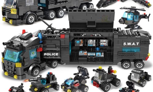 HUIQIBAO SWAT 경찰서 트럭 모델 빌딩 블록 도시 기계 헬리콥터 자동차 피규어 아이들을위한 벽돌 교육 장난감---------